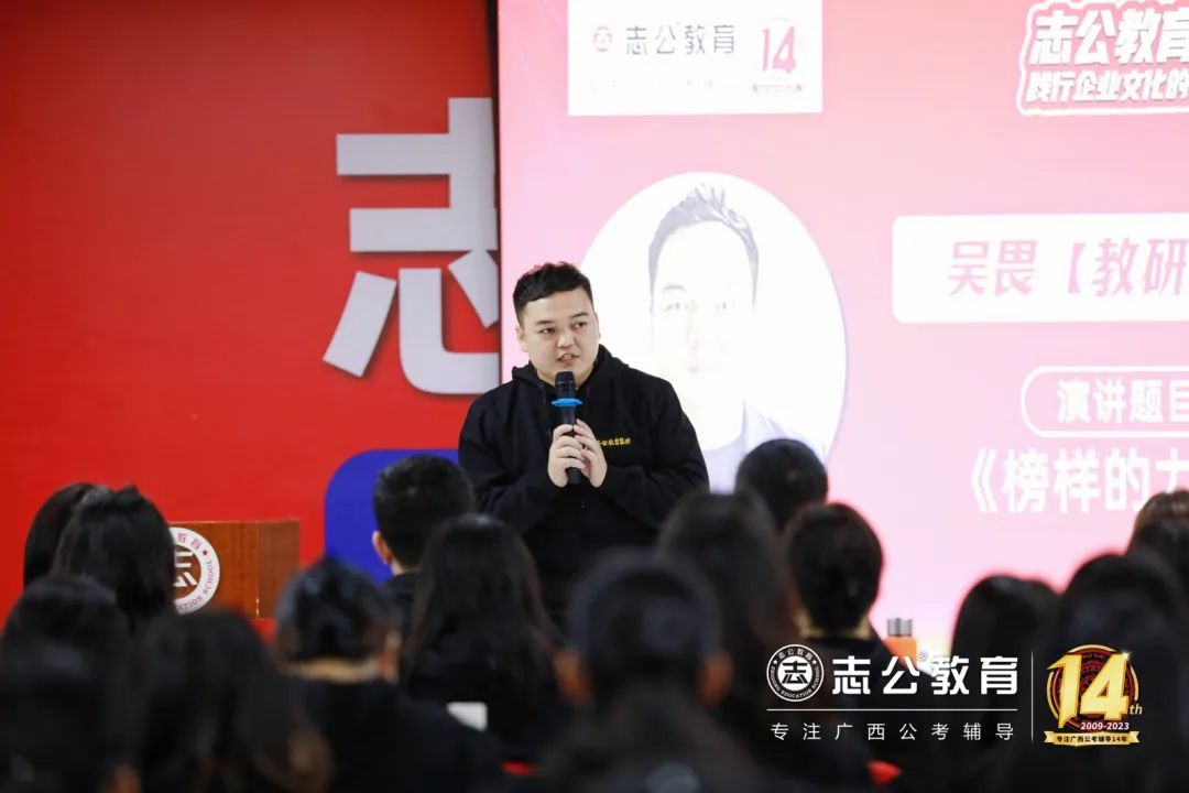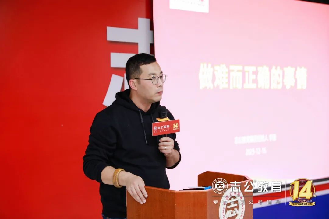 16日上午9點(diǎn)許,董事長(zhǎng)李勇發(fā)表致辭,他認(rèn)為:“聚焦是一種力量”,對(duì)于志公教育而言,聚焦就是專(zhuān)注廣西公考輔導(dǎo)。