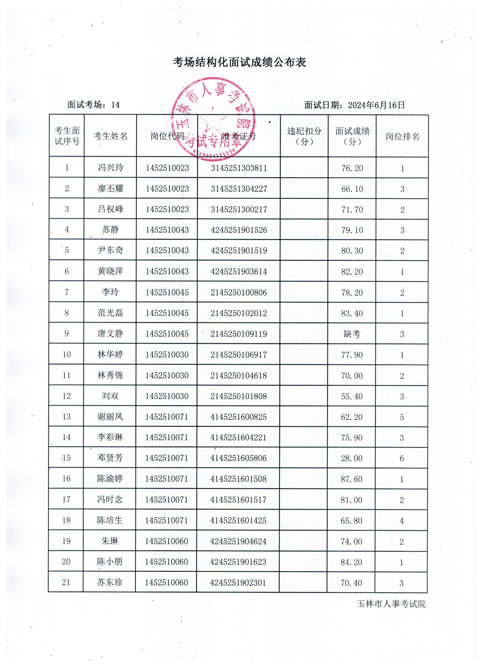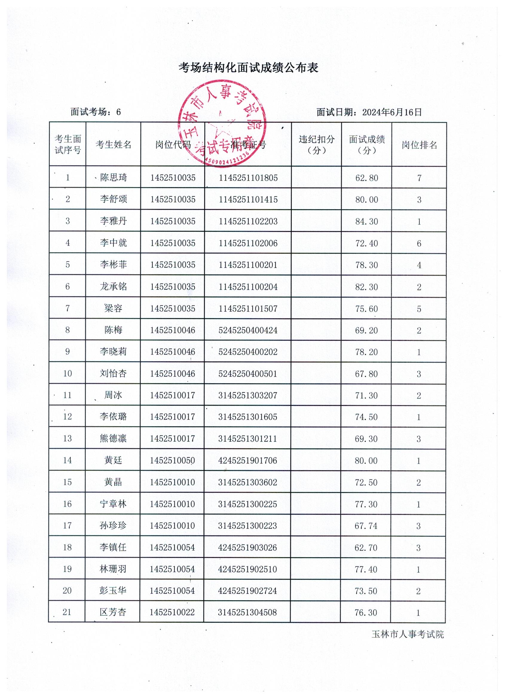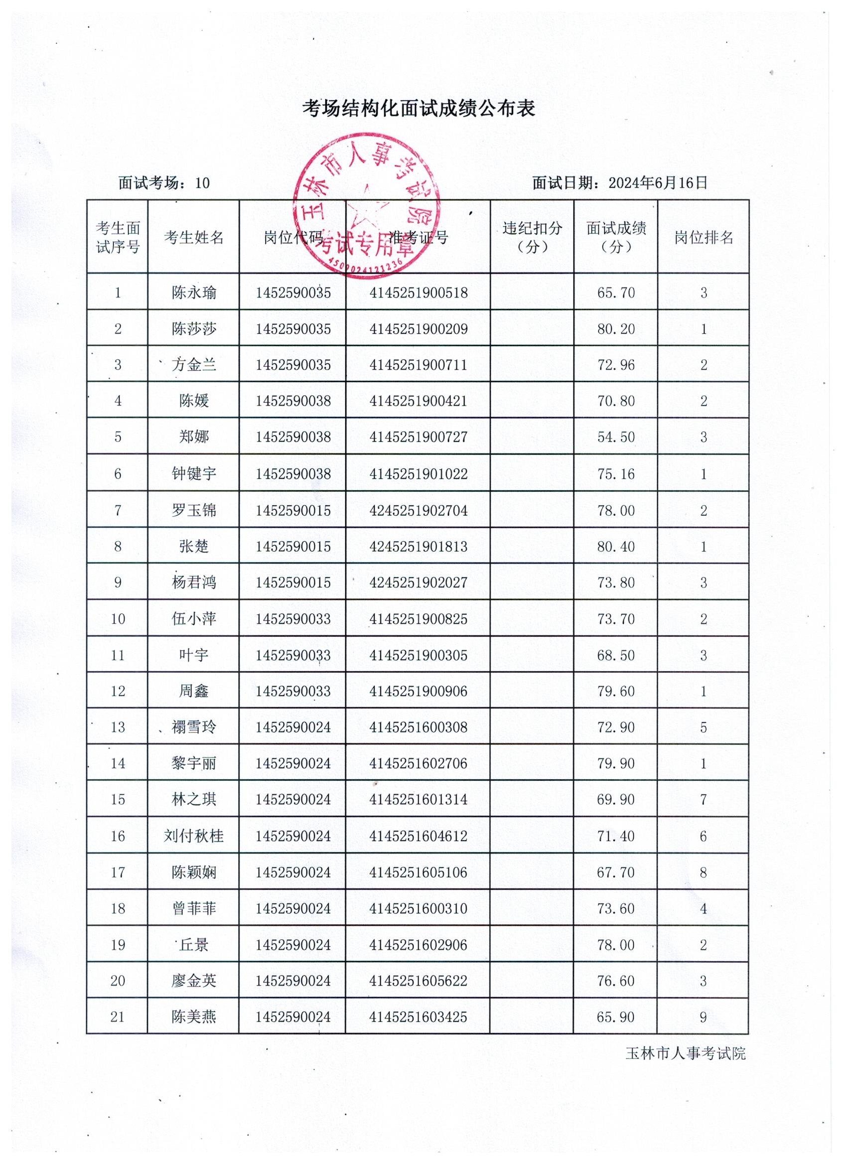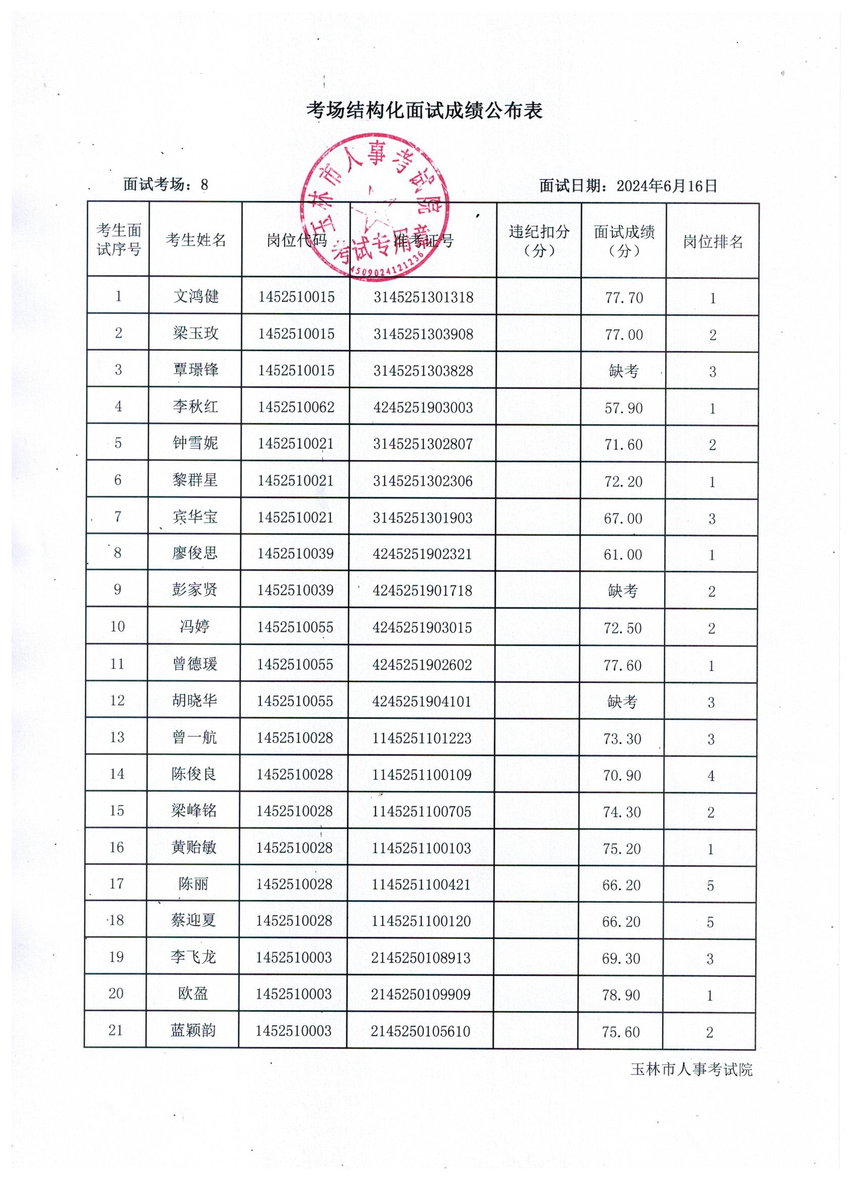 原文標(biāo)題:2024年玉林市直(含玉州區(qū)、福綿區(qū)、玉東新區(qū))事業(yè)單位公開招聘人員面試成績(jī)公布(6月16日)