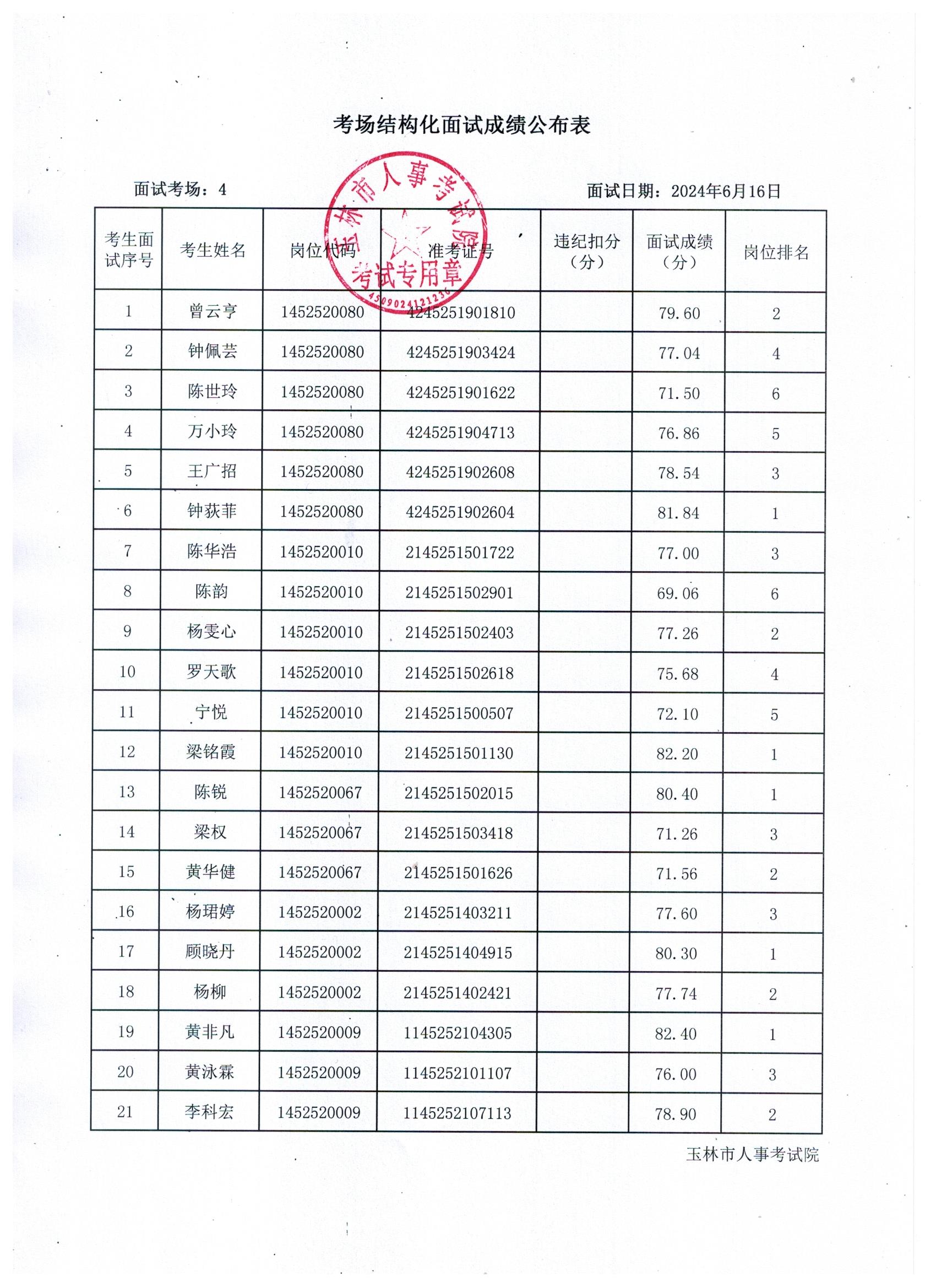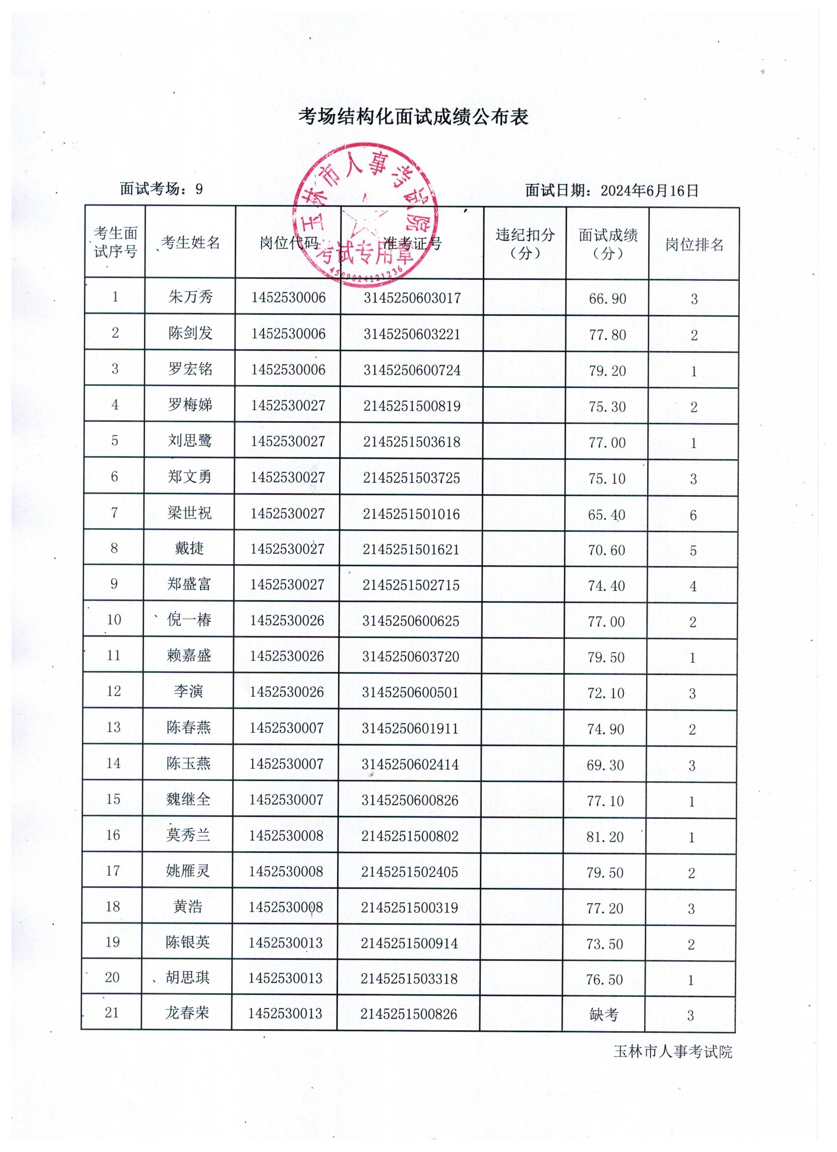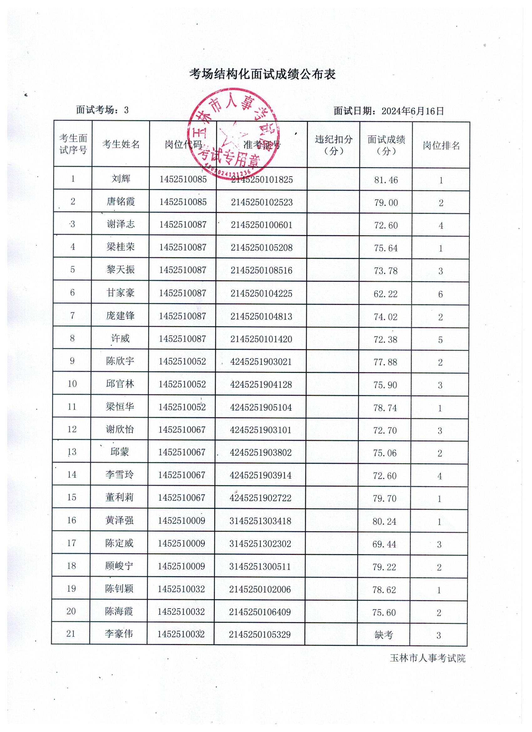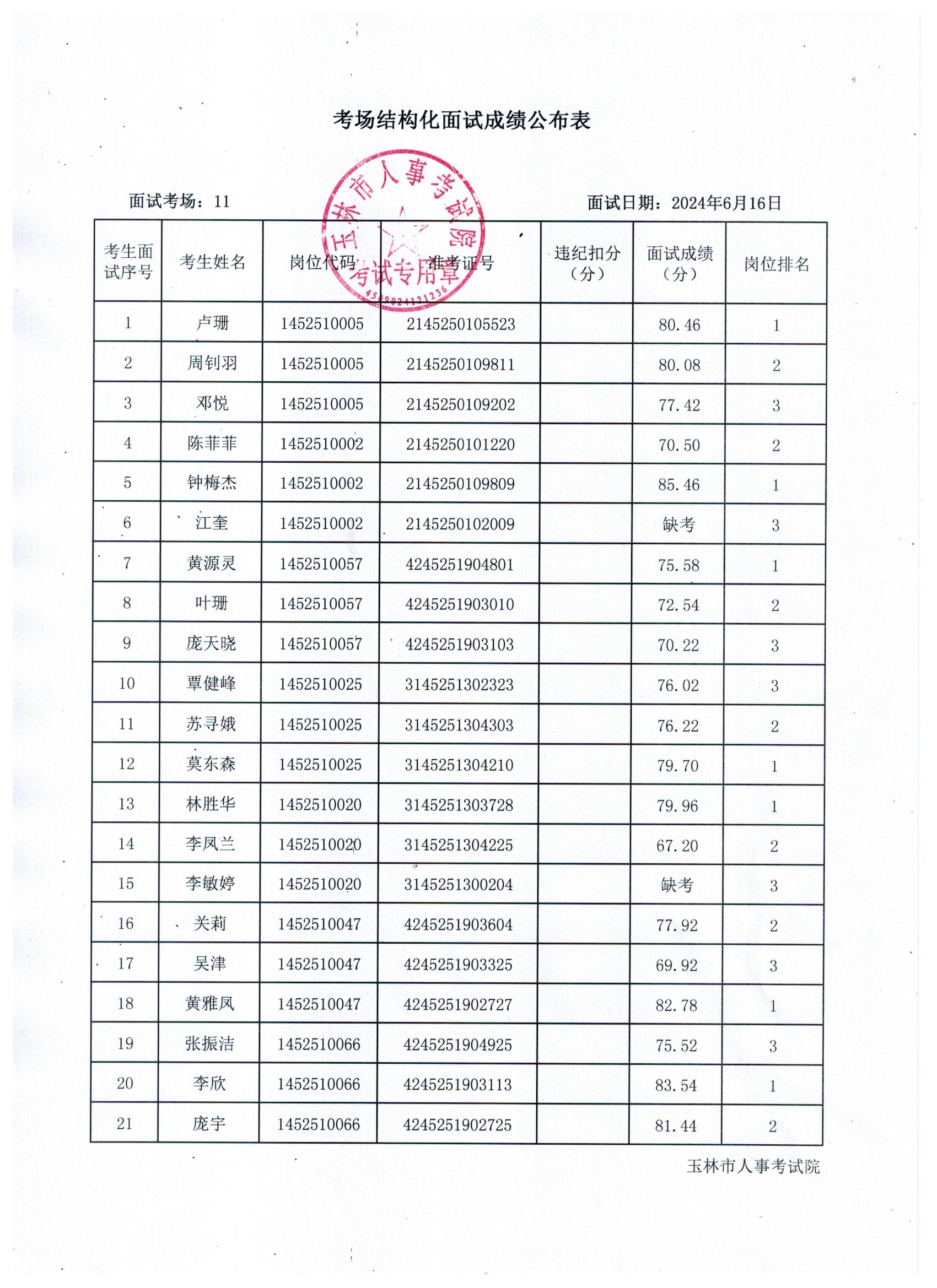 原文標(biāo)題:2024年玉林市直(含玉州區(qū)、福綿區(qū)、玉東新區(qū))事業(yè)單位公開招聘人員面試成績(jī)公布(6月16日)