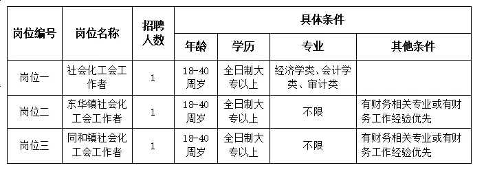 (五)具有全日制大專以上文化程度,年齡18-40周歲,性別不限;崗位一專業(yè)必須為經(jīng)濟學類、會計學類、審計類專業(yè);崗位二、崗位三專業(yè)不限,同等條件下,有財務相關專業(yè)或有財務工作經(jīng)驗優(yōu)先;