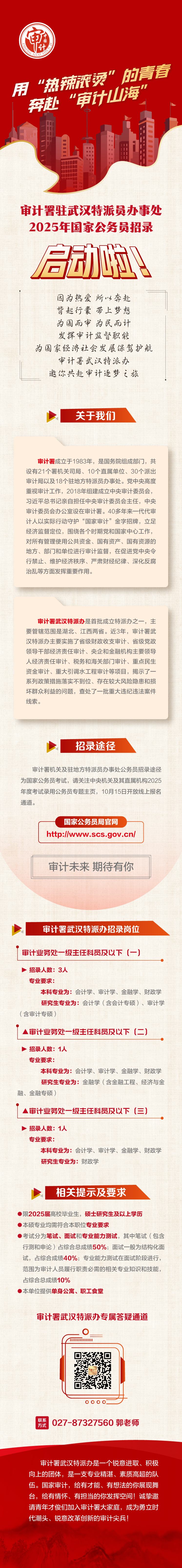 原文標(biāo)題:【現(xiàn)代服務(wù)】審計署駐武漢特派員辦事處2025年國家公務(wù)員招錄啟動!