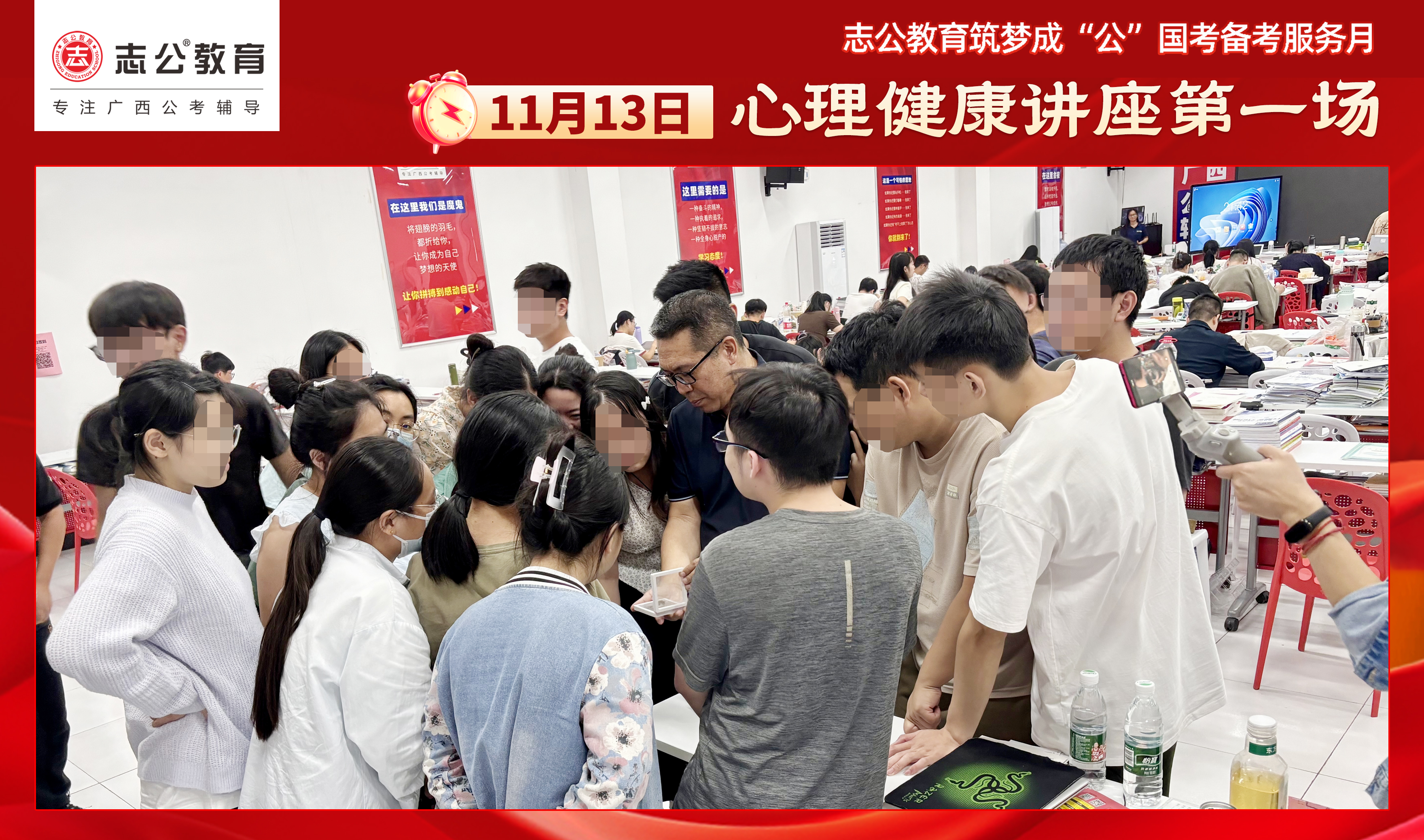 公務(wù)員考試備考?jí)毫μ螅?/span>快來(lái)聽一聽這場(chǎng)心理講座吧,這里你將感受到溫馨、舒適、充滿正能量的氛圍,【筑夢(mèng)成“公”】國(guó)考備考之心理講座第一場(chǎng)已于昨日結(jié)束,快跟隨小志的腳步,一起來(lái)回顧一下吧!