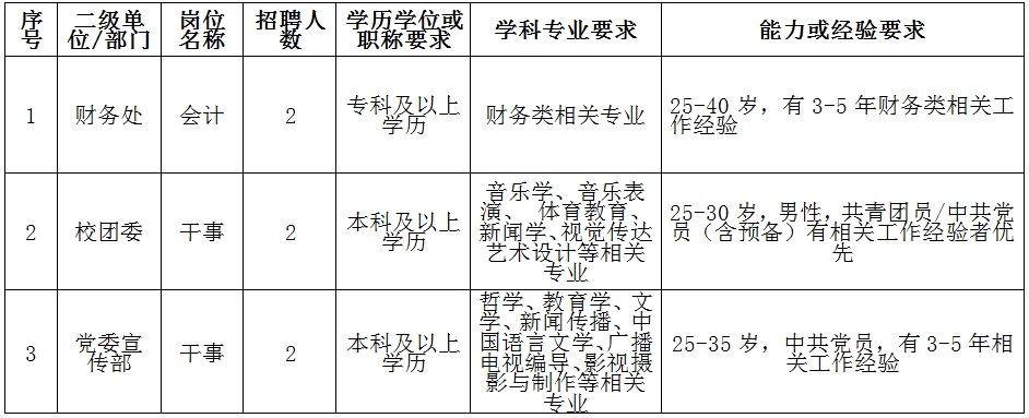 (二)行政、教輔部門人員招聘崗位