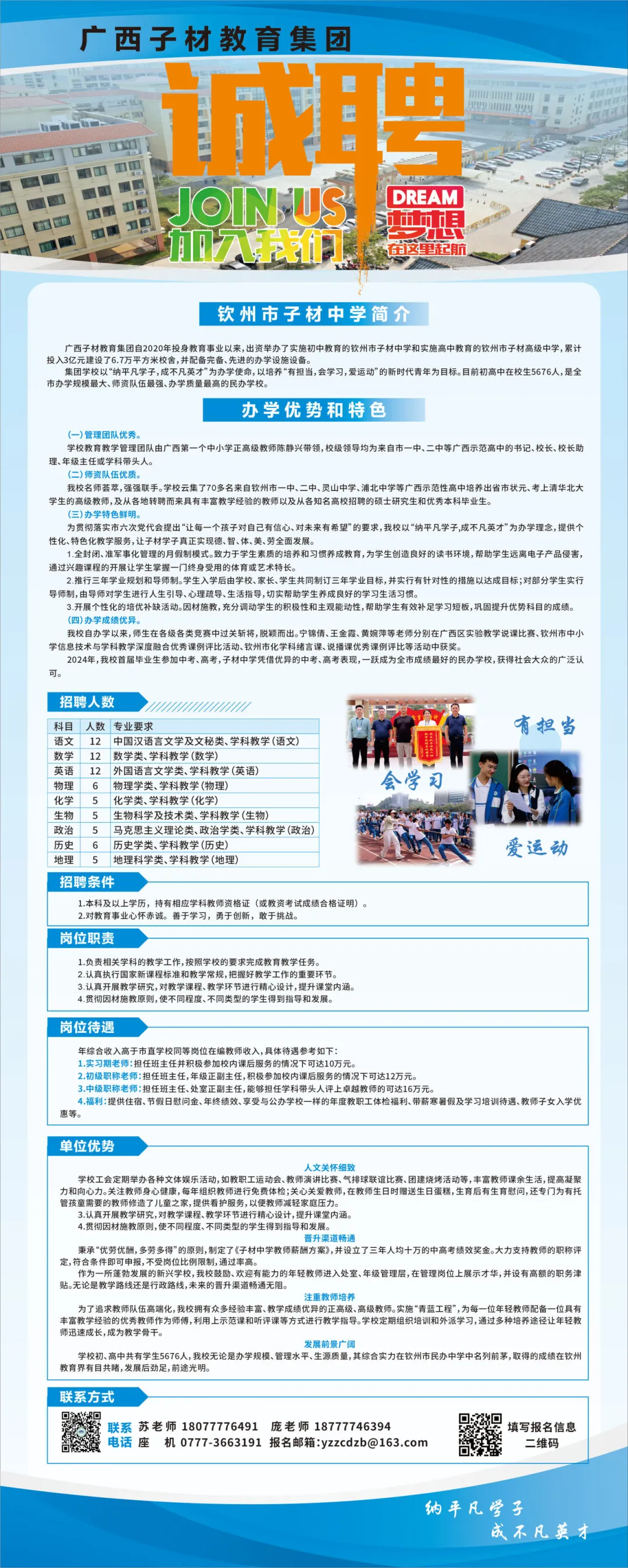 欽州市子材中學(xué)2025年教師招聘計(jì)劃