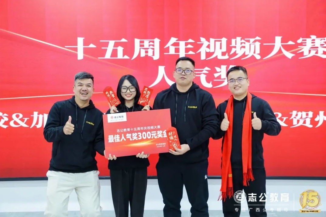 一直以來,志公教育都秉承著“12條企業(yè)文化核心價值觀”,包括客戶原則——以學(xué)員為中心”、“管理原則——人人都是經(jīng)營者”等12項原則,扎根廣西本土公考,全力服務(wù)每一位志公學(xué)員。在董事長李勇的正確領(lǐng)導(dǎo)下,在廣大學(xué)員的支持下,在全體員工的共同努力下,志公教育從無到有,從小到大,不斷夯實發(fā)展基礎(chǔ),贏得了客戶的信賴和品牌形象。全體志公人將堅定目標(biāo)齊奮斗、凝心聚力再出發(fā),為志公高質(zhì)量發(fā)展再立新功。