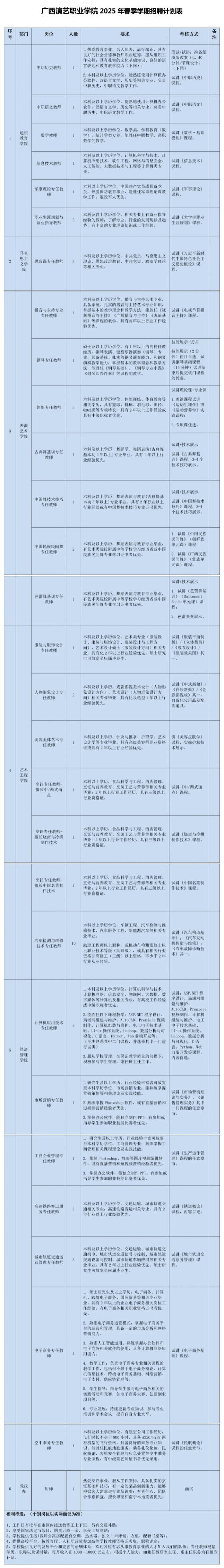 見廣西演藝職業(yè)學(xué)院2025年春季學(xué)期招聘計劃表(也可上廣西人才網(wǎng)了解具體信息)。