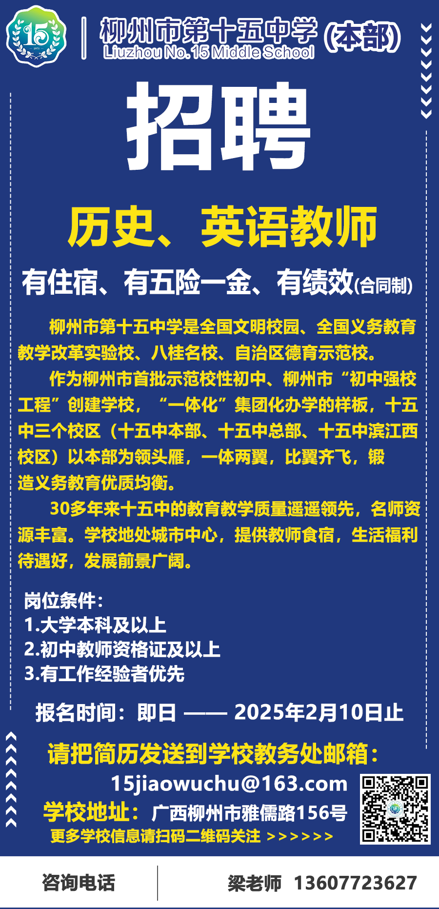 2025年柳州市第十五中學(xué)本部誠聘歷史、英語老師
