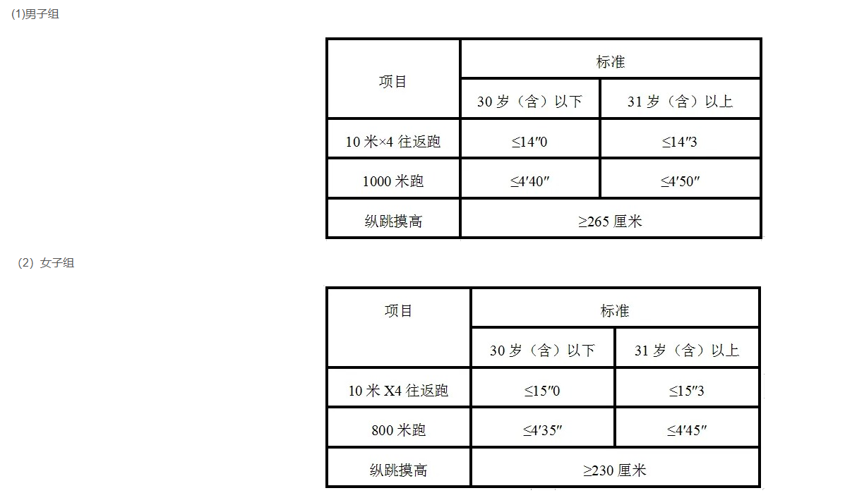 研究生及以上學歷報考人員參加體能測評三項內容中有兩項達標的,視為合格。非研究生及以上學歷報考人員體能測評三項全部達標方為合格。