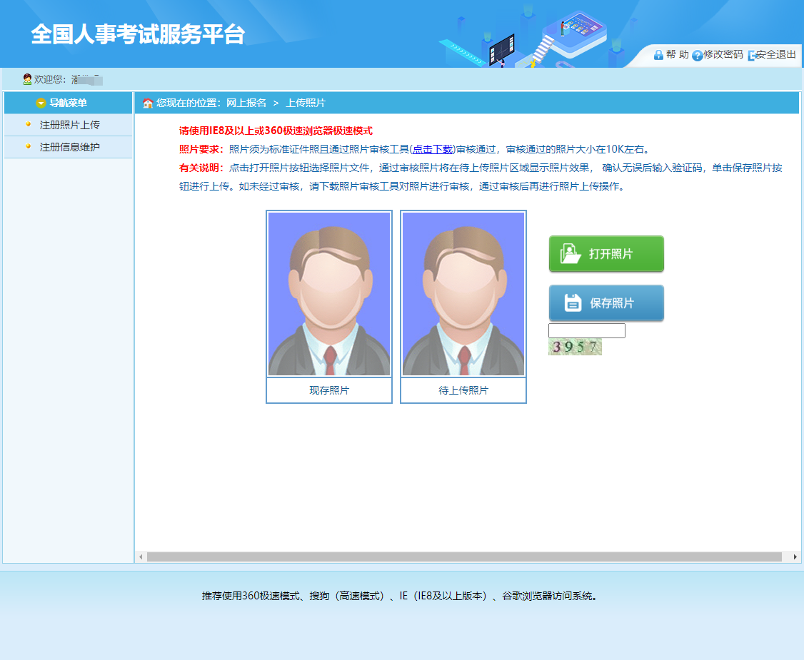 第四步:上傳報名照片(注:需要用電腦端下載照片處理工具,對照片進(jìn)行審核,準(zhǔn)備好一張紅藍(lán)白底證件照,進(jìn)入照片審核處理工具進(jìn)行處理,完成之后用處理好的照片在此頁面上傳)