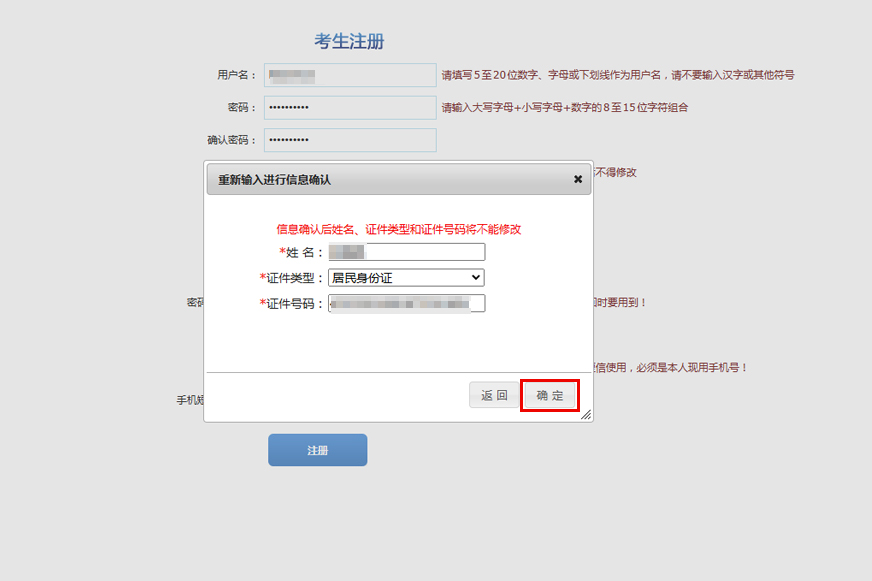 第三步:填寫完個人信息后,點(diǎn)擊注冊-確定,完成注冊