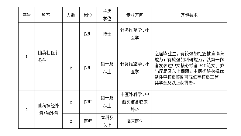 原文標(biāo)題:仙葫壯醫(yī)針灸科、仙葫神經(jīng)外科?胸外科招聘公告