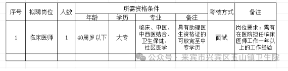 原文標(biāo)題:來(lái)賓市興賓區(qū)五山鎮(zhèn)衛(wèi)生院公開(kāi)招聘編制外聘用人員公告