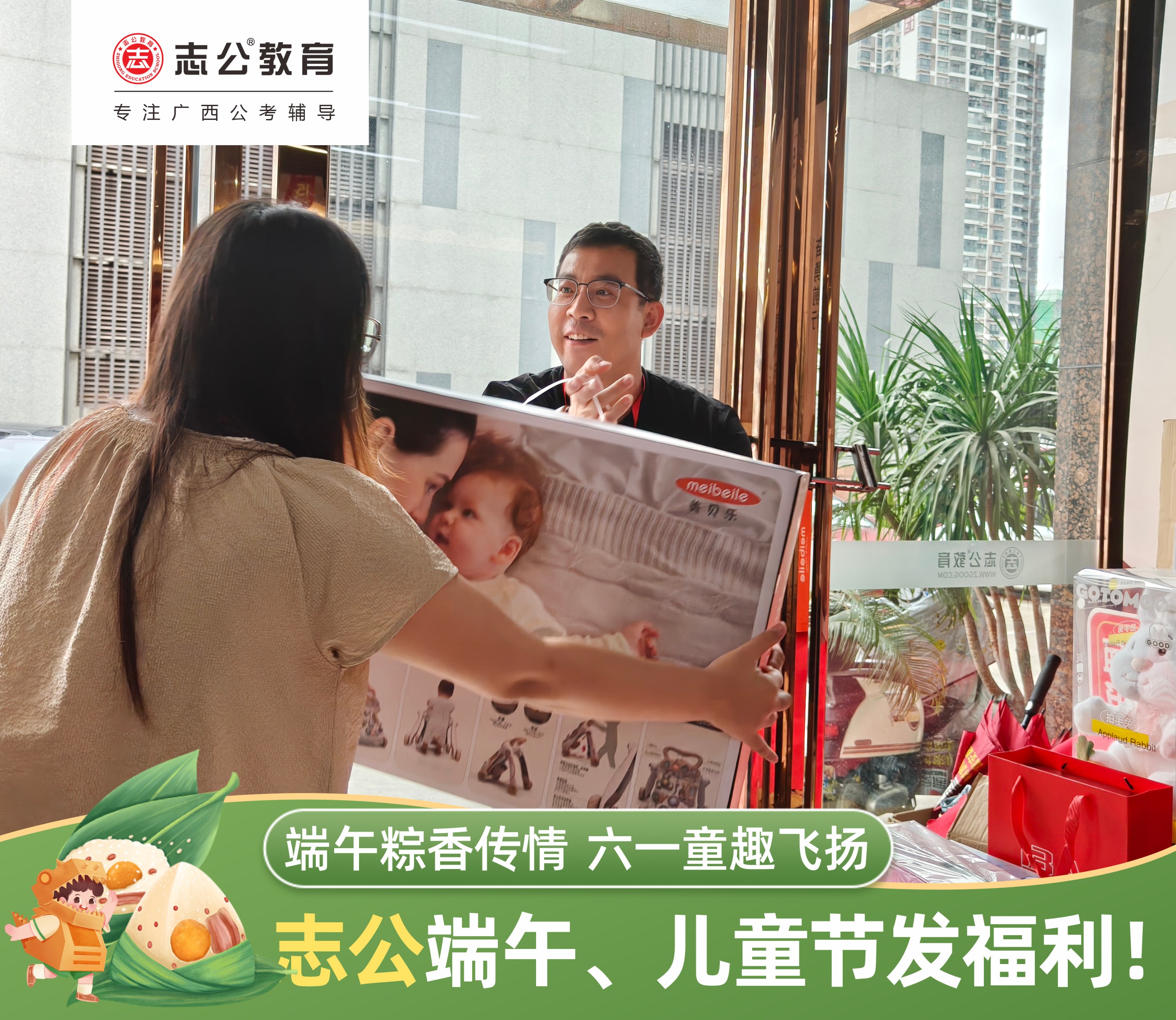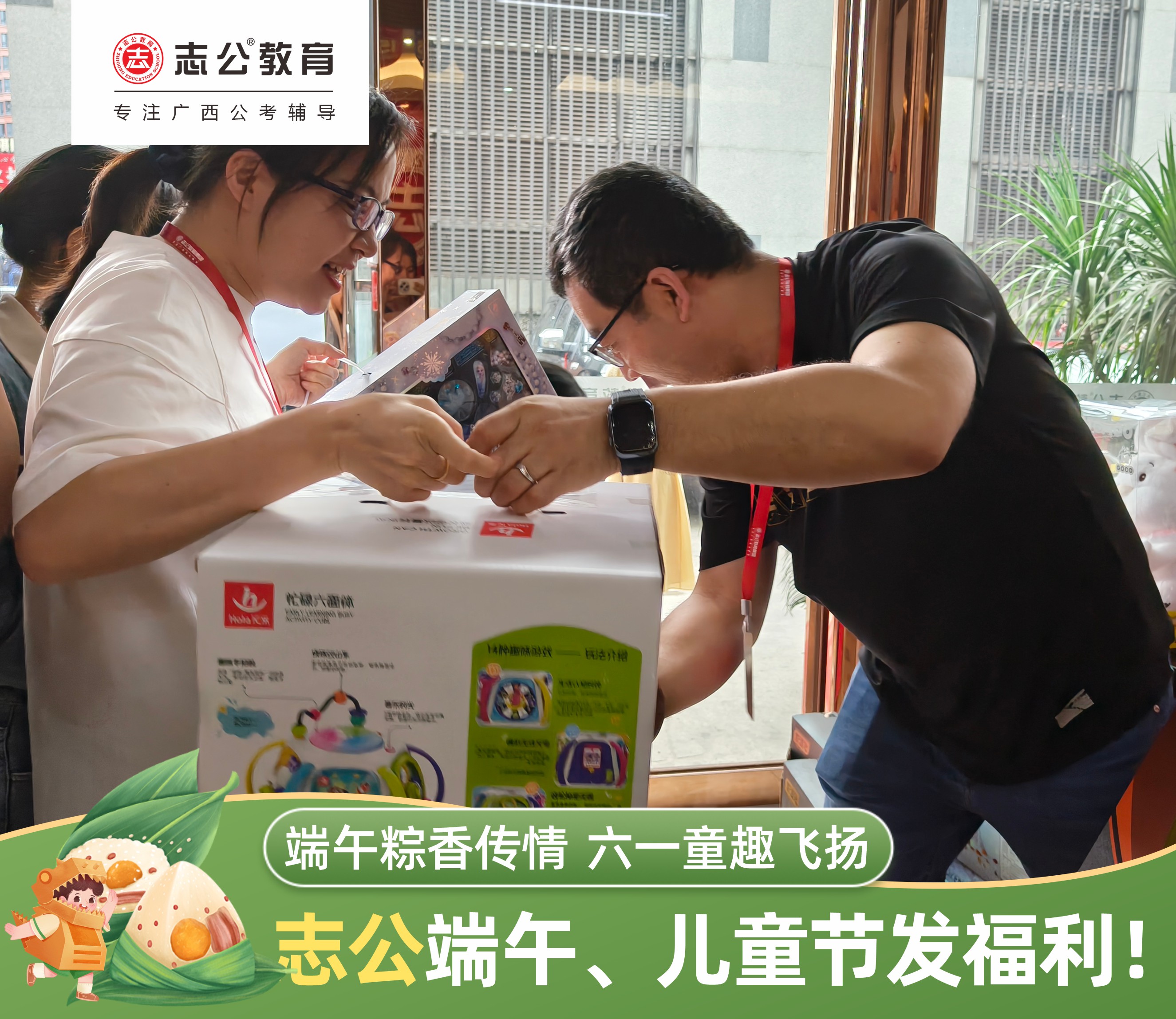 在端午佳節(jié)與六一兒童節(jié)雙節(jié)即將來臨之際,志公教育為表達(dá)對全體員工的關(guān)懷與感謝,特別準(zhǔn)備了一系列節(jié)日福利,讓員工在忙碌的工作之余,感受到來自公司的溫暖與祝福。