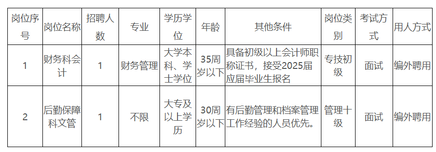 財務(wù)科會計1人,后勤保障科文管1人