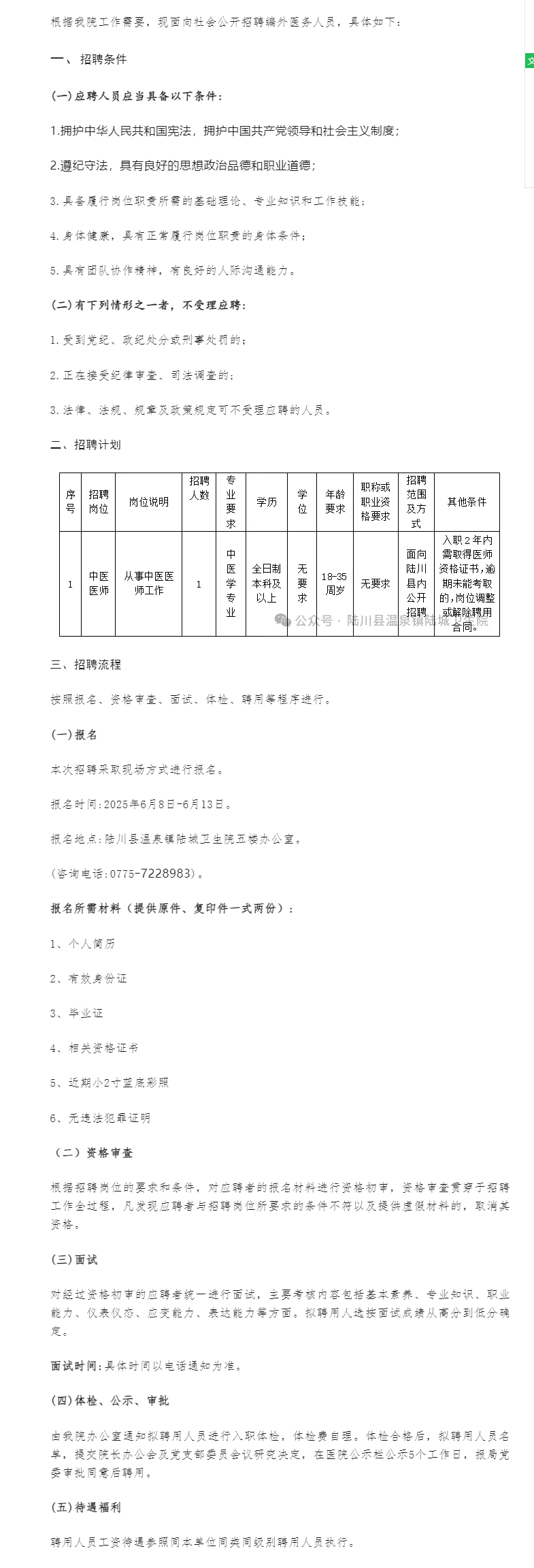 原文標(biāo)題:陸川縣溫泉鎮(zhèn)陸城衛(wèi)生院公開招聘編外醫(yī)務(wù)人員公告