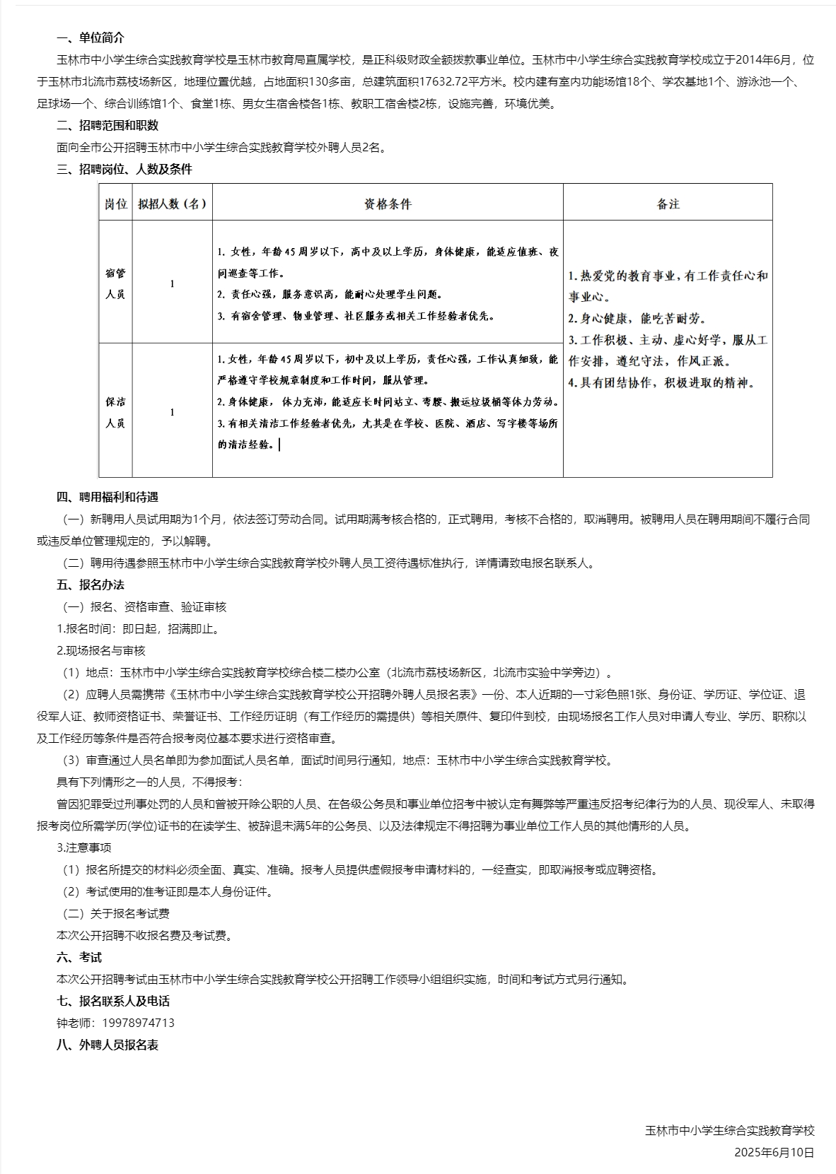 2025年玉林市中小學(xué)生綜合實(shí)踐教育學(xué)校公開招聘外聘人員公告(五)