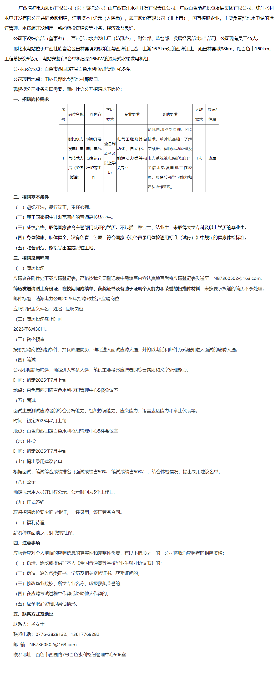原文標題:廣西清源電力股份有限公司2025年勞務(wù)派遣人員招聘公告