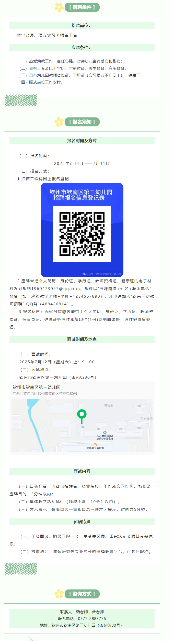 原文標(biāo)題:欽州市欽南區(qū)第三幼兒園2025年秋招聘教學(xué)老師、頂崗實習(xí)老師公告