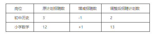 按照《2025年玉林市玉州區(qū)特崗教師招聘公告》中“招聘崗位計劃招聘人數(shù)與通過資格復審通過人數(shù)的比例達到1:3的方可開考。達不到開考比例的,減少該崗位的招聘數(shù),空出的崗位計劃數(shù)可調劑到生源充足的其他學科崗位使用。調劑方案經玉州區(qū)特崗教師招聘領導小組審定。”的規(guī)定,由于初中歷史崗位計劃招聘3人,資格復審通過實際人數(shù)為7人,未達到開考比例。經玉州區(qū)特崗教師招聘領導小組同意,初中歷史崗位招聘人數(shù)減少1人,減少的崗位調整到生源較充足的小學數(shù)學崗位使用,具體調整如下: