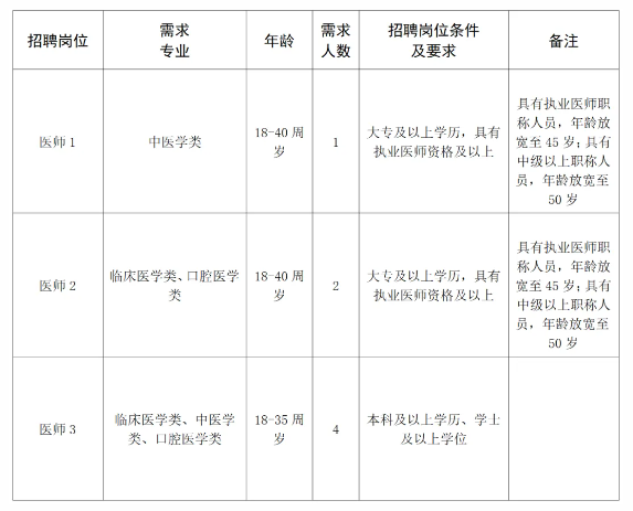 根據(jù)醫(yī)院發(fā)展需求,歡迎符合我院臨床醫(yī)學(xué)專(zhuān)業(yè)的專(zhuān)家前來(lái)應(yīng)聘從事臨床醫(yī)療工作,具有中級(jí)及以上醫(yī)師資格職稱(chēng),待遇根據(jù)相關(guān)政策規(guī)定給予。