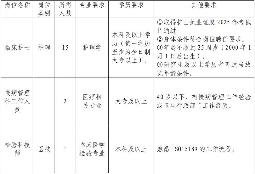 (一)報名。應(yīng)聘者需在2025年9月21日前將個人電子簡歷及應(yīng)聘所需佐證材料,包括但不限于畢業(yè)證(第一學歷和最高學歷)、學位證、執(zhí)業(yè)證(考試成績)、職稱證、進修結(jié)業(yè)證、專科護士培訓合格證、執(zhí)業(yè)資格考試成績單等打包發(fā)送至rsk7836669@163.com郵箱,報名材料以“姓名+專業(yè)+衛(wèi)技招聘”名字命名。