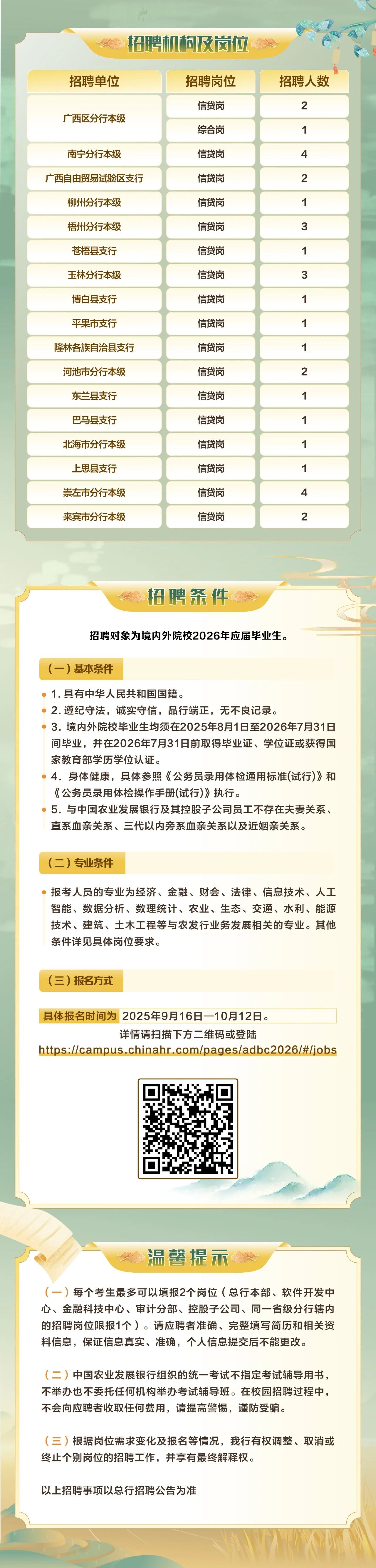原文標(biāo)題:中國(guó)農(nóng)業(yè)發(fā)展銀行廣西區(qū)分行2026年校園招聘正式啟動(dòng)