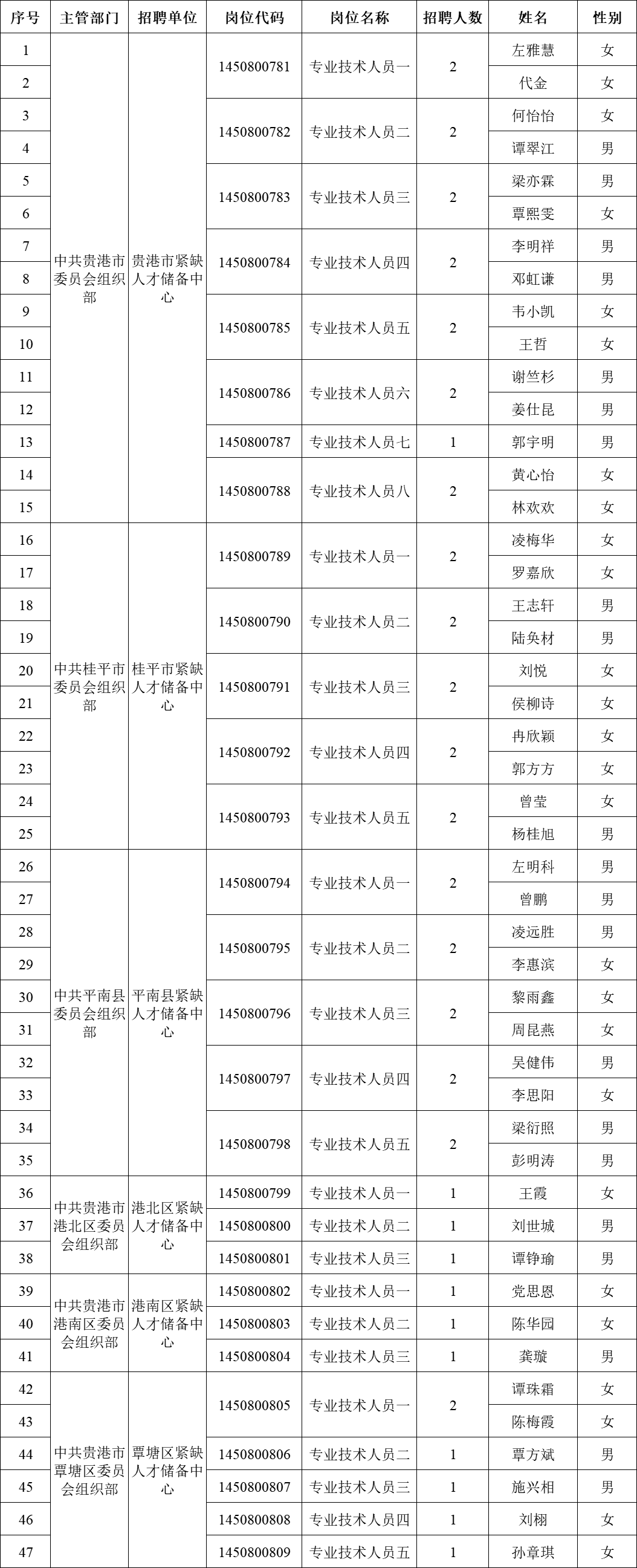 附件:2025年貴港市引進重點領域重點產(chǎn)業(yè)急需緊缺(高層次)人才進入考察人員名單