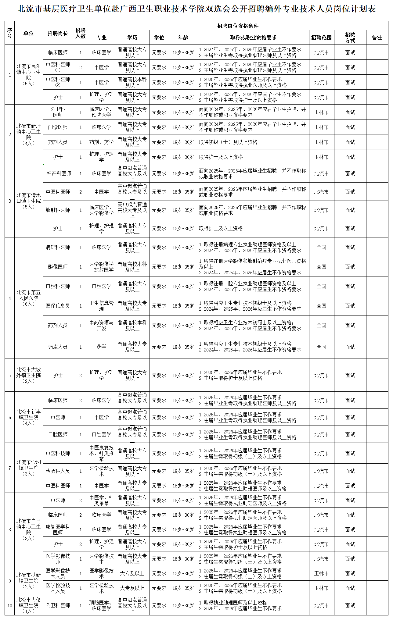 附件:1.北流市基層醫(yī)療衛(wèi)生單位赴廣西衛(wèi)生職業(yè)技術(shù)學(xué)院雙選會(huì)公開(kāi)招聘編外專(zhuān)業(yè)技術(shù)人員崗位計(jì)劃表