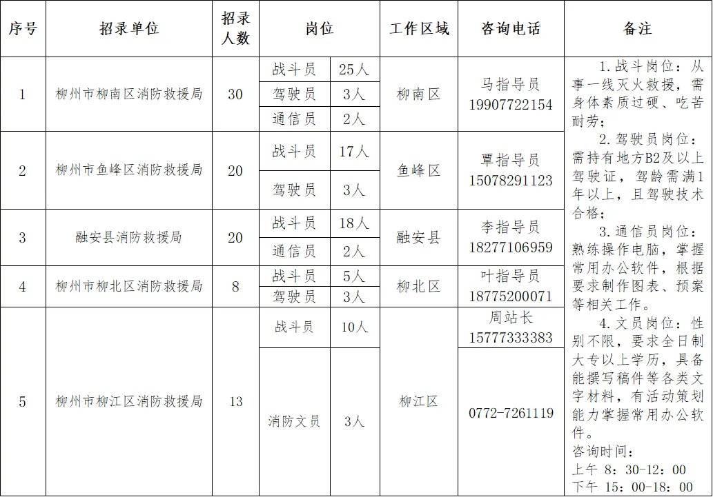 政府專職消防員91人。崗位要求:男性,身高165CM以上,雙眼裸視力4.8以上,需具備高中(中專)以上學(xué)歷,年齡為18-28周歲以下(有部隊服役經(jīng)歷或者全日制大專及以上學(xué)歷可放寬至30周歲),身體素質(zhì)過硬、吃苦耐勞、心理健康,無遺傳性、傳染性和慢性疾病,符合體檢標準。
