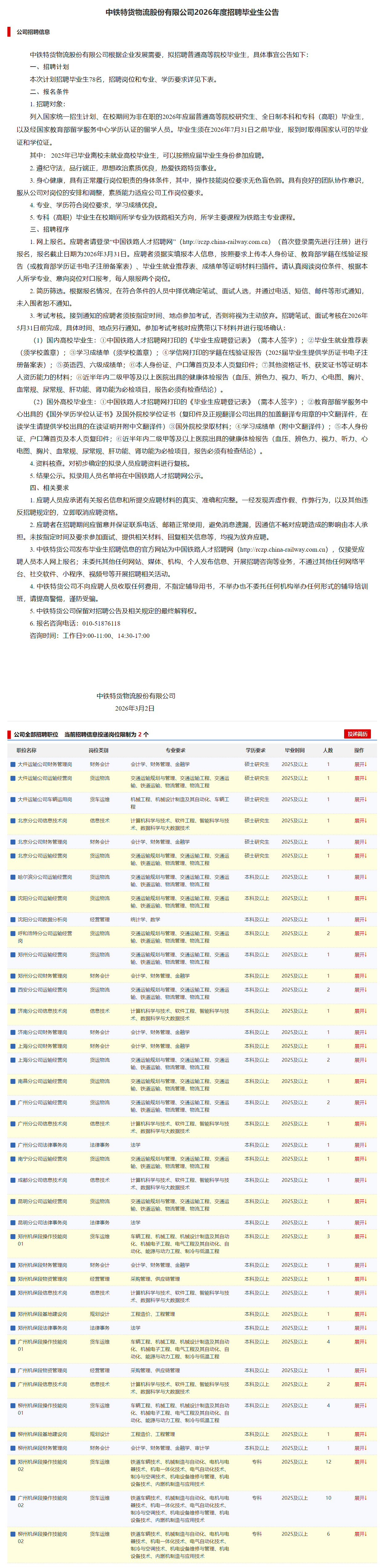 2026年度中鐵特貨物流股份有限公司招聘畢業(yè)生公告(南寧、柳州有崗)